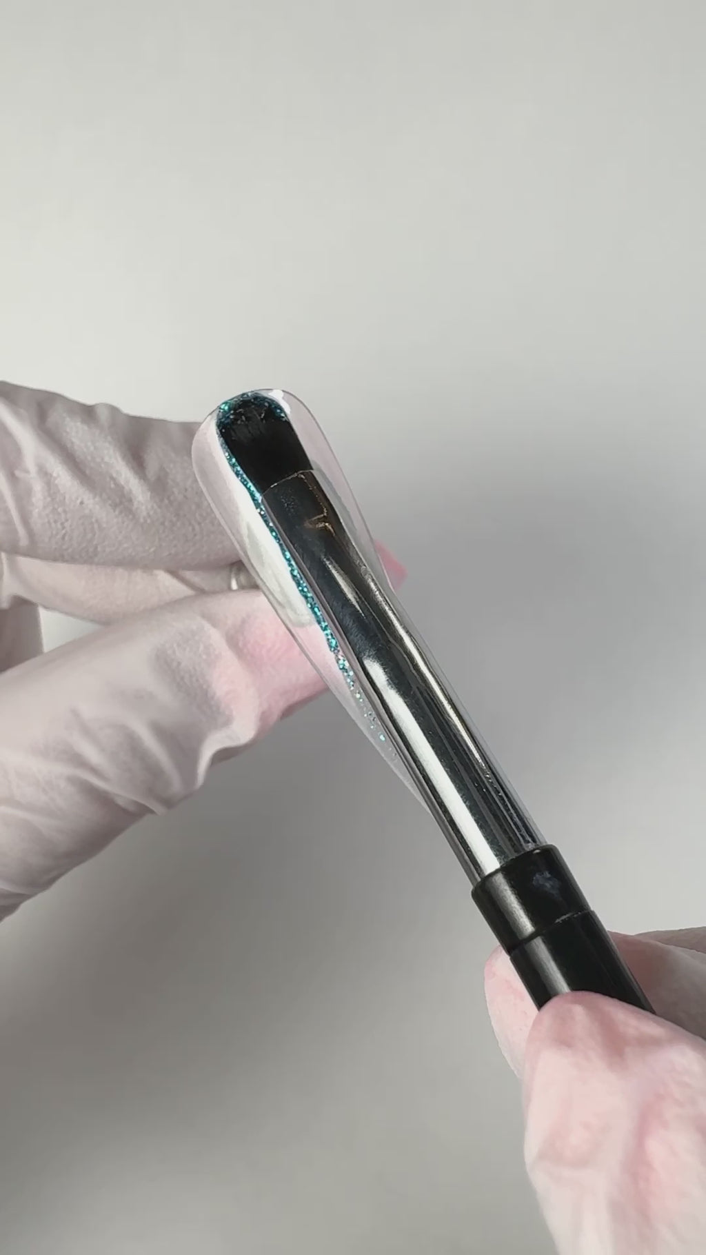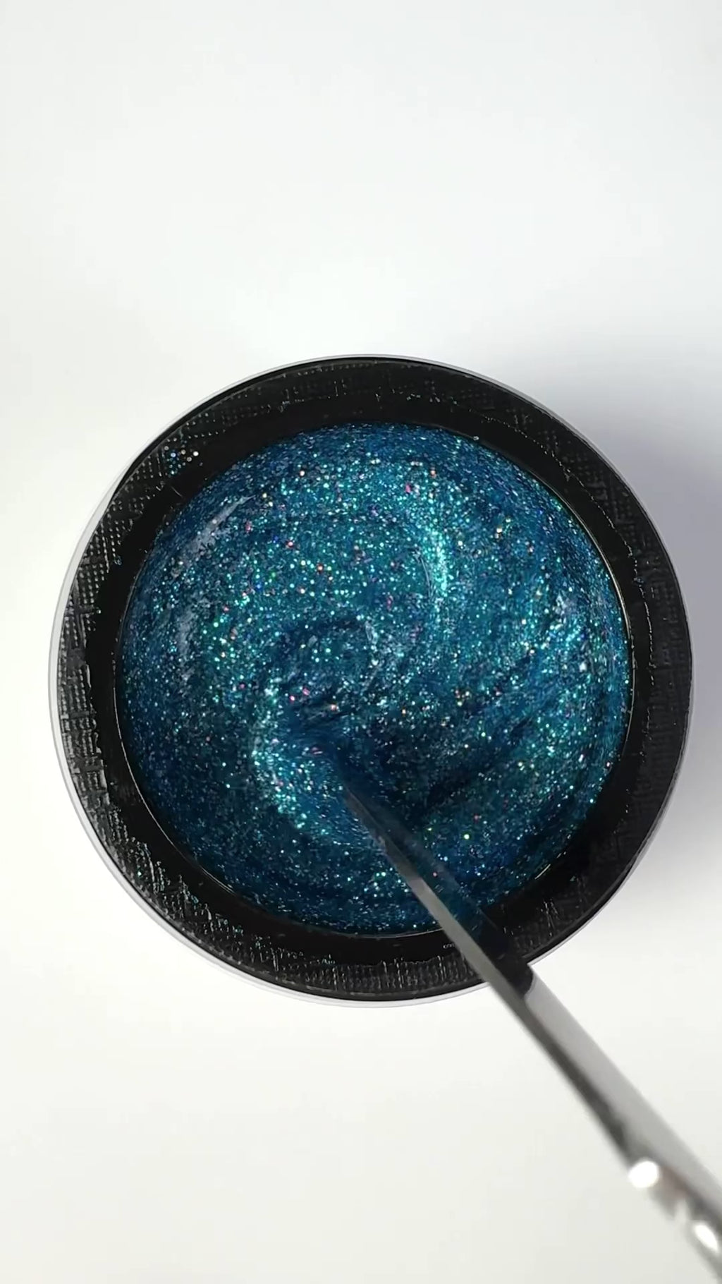 A bright, flashy peacock blue. Ultra-fine glitter flashes bright iridescent pieces. This is a beautiful summer blue!