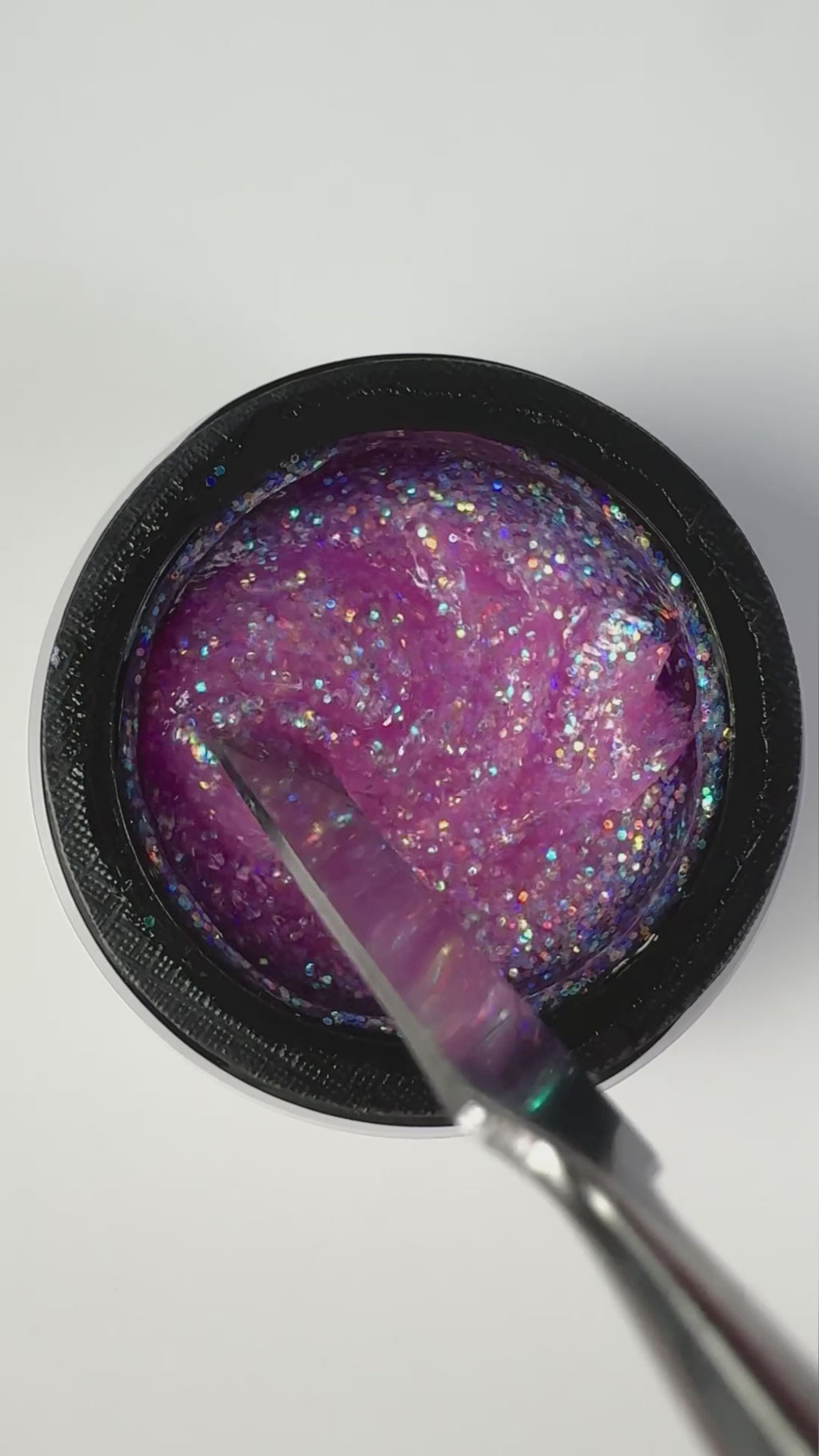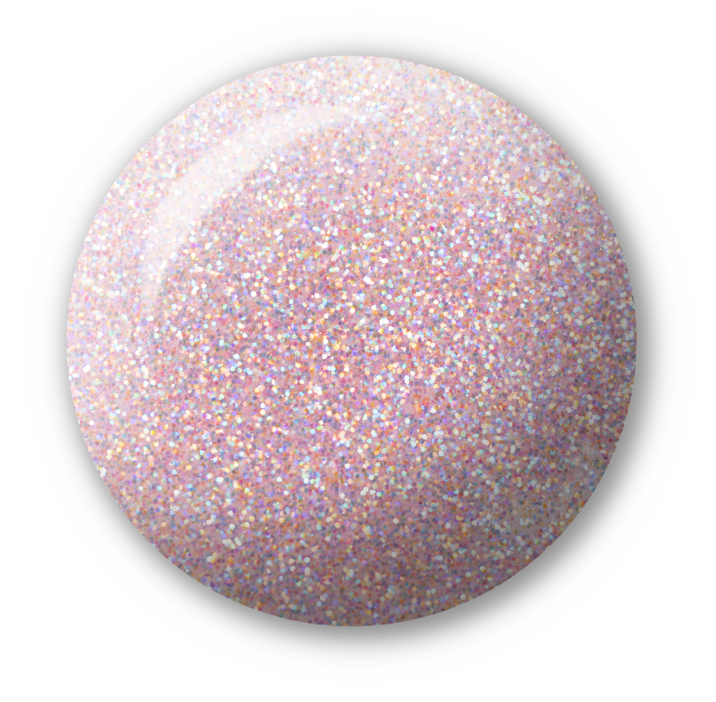 A sweet, baby pink with popping iridescent glitters mixed in. This delicate pink glitter gel behaves like a “jelly” softening the iridescent colors.