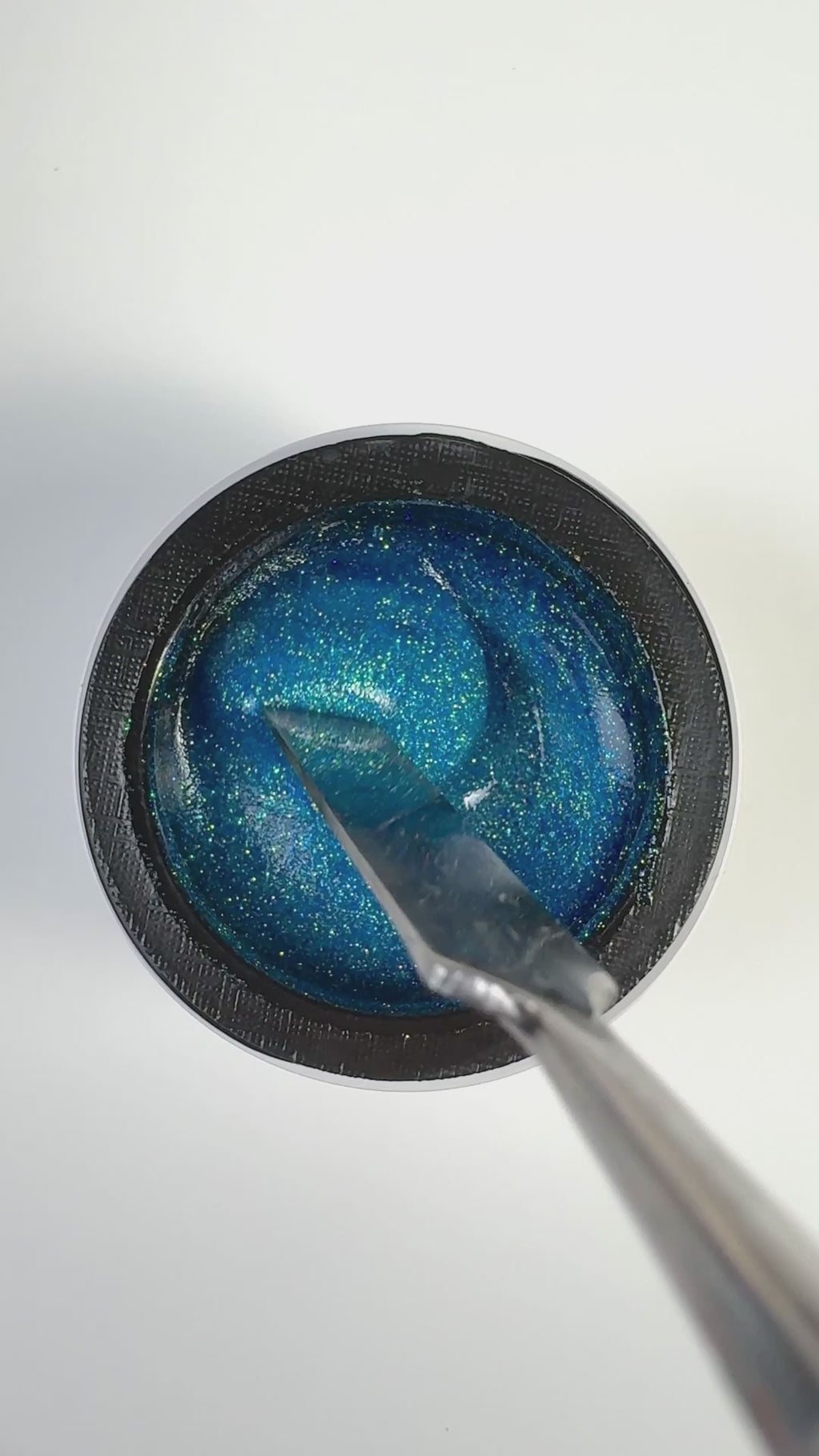 A fine, medium blue that has a jelly-like appearance. Lightly sprinkled with small iridescent flashes to create this delicate spring blue.