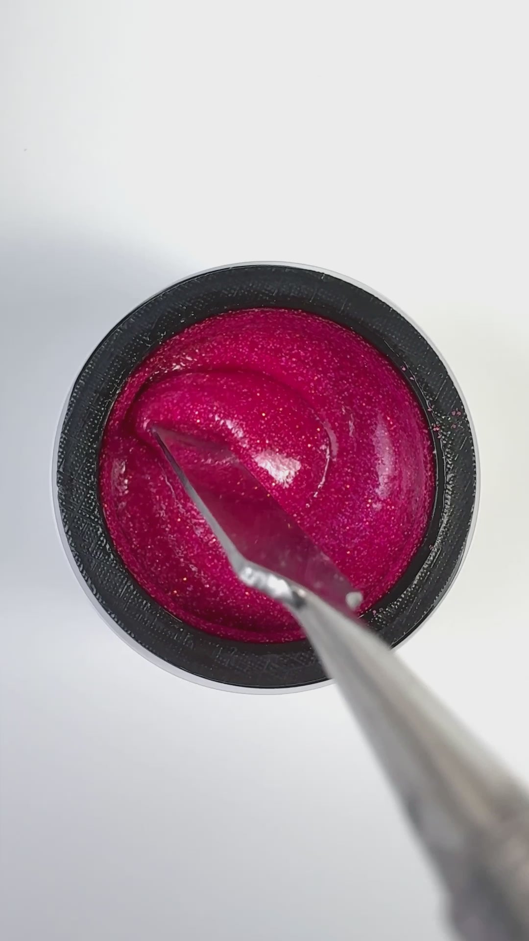 This wildly fun pink is a fine glitter with a mix of sparkle and matte. There are some fiery-coral flashes that are lightly scattered throughout.
